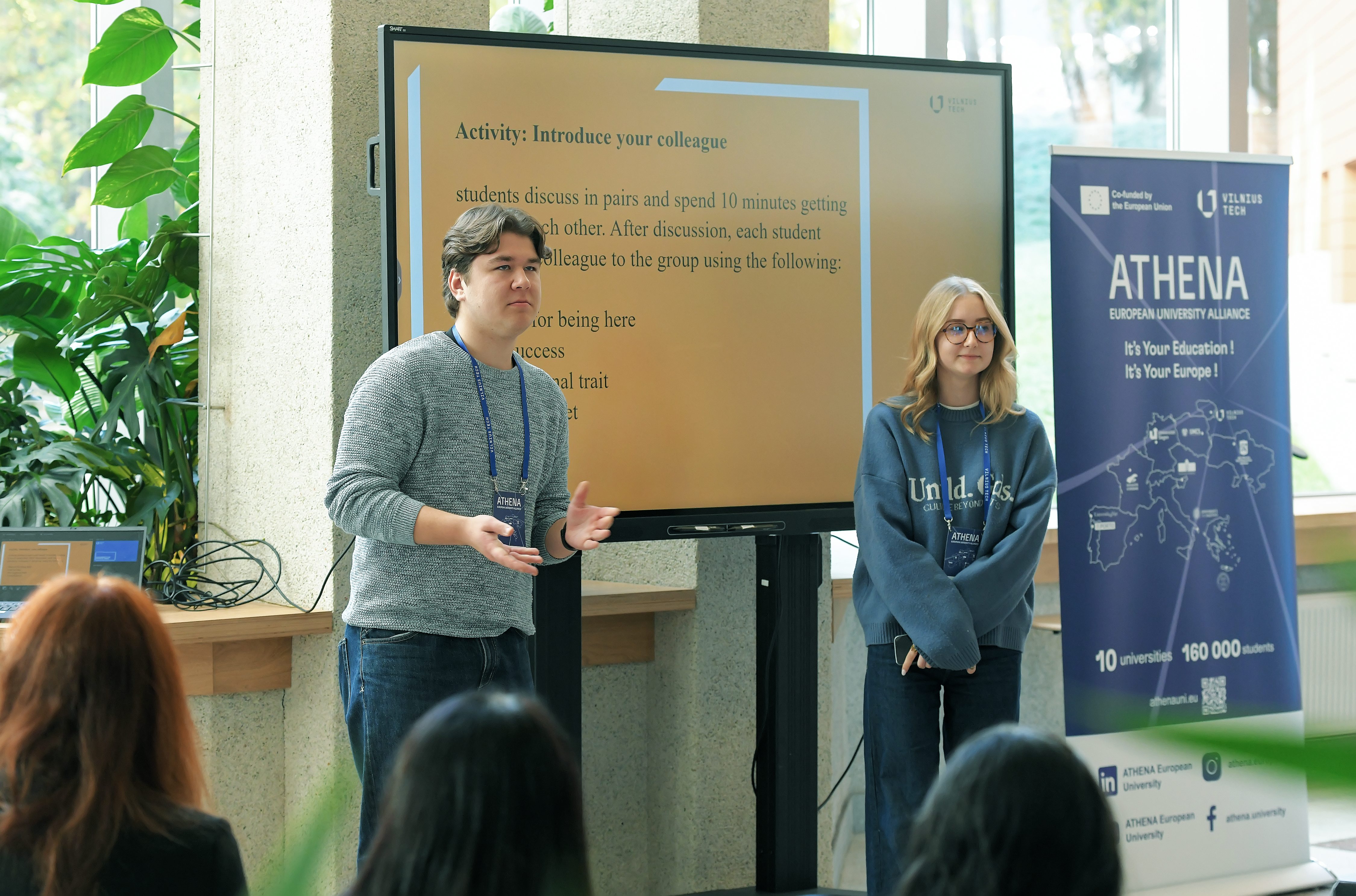 From October 13–24, VILNIUS TECH hosted the ATHENA European University Blended Intensive Programme (BIP), "Sustainable Student Organisations," bringing together students and lecturers from 8 of the alliance's partner countries. The programme's goal was to provide participants with the knowledge and practical skills to help build sustainable, inclusive, and resilient student organisations in European universities, and to propose solutions that would enhance student activities within the ATHENA university alliance.