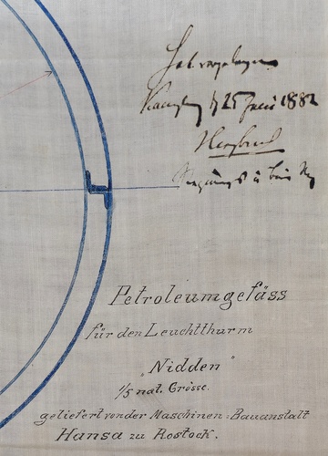 „Pagrindinė užduotis Berlyne buvo rasti švyturio koordinates, vietą atskleidžiančius dokumentus ar žemėlapius. Vis tik už akių netikėtai užkliuvo jau išanalizuotų, unikalios konstrukcijos kuro statinių brėžinys su aprašu ir nurodytais matmenimis. Šios keturios kuro statinės – pirmi ir kol kas vieninteliai dokumentuoti senojo Nidos švyturio inžinerinės įrangos eksponatai, kuriuos bus galima eksponuoti ir palikti ateities kartoms. Iki šiol buvo manyta, kad kuro statinės buvo atvežtos iš garlaivio ir skirtos dyzeliniam kurui laikyti.