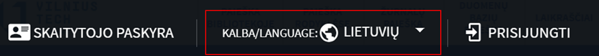 - Atsiradusiame lauke, spustelėkite „Kalba/Language“. Paspaudę galėsite pasirinkti anglų/lietuvių kalbą
