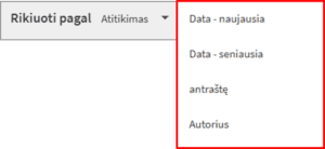- Norėdami, kad tikslesni ir naujesni paieškos rezultatai būtų rodomi pirmiausia, naudokite funkciją „Rikiuoti pagal“.