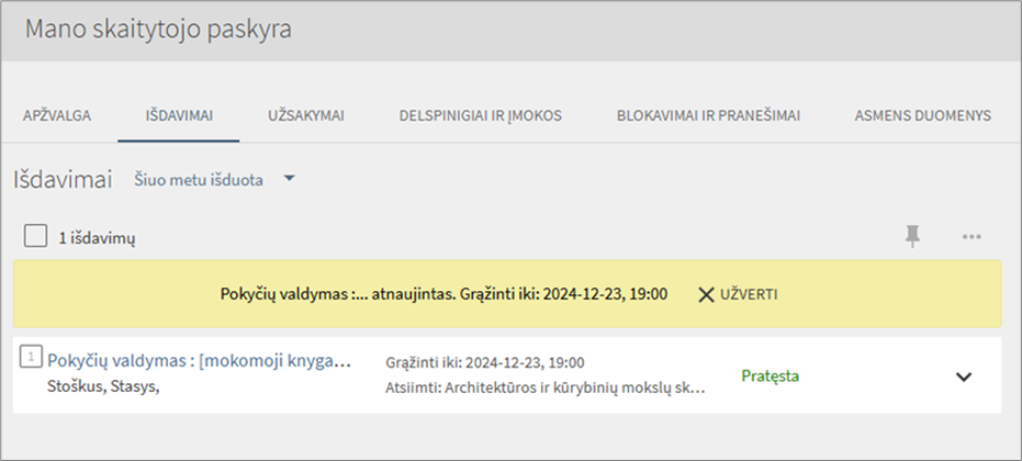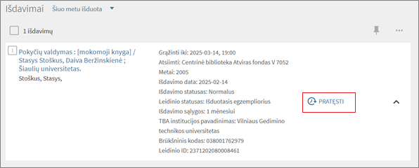 - Pratęsus leidinį, matysite naują grąžinimo datą