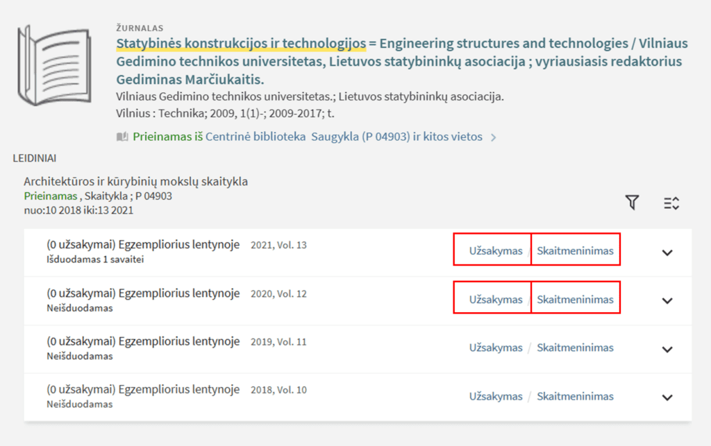 - Įvedus leidinio pavadinimą į paieškos laukelį ir paspaudus paieškos simbolį,