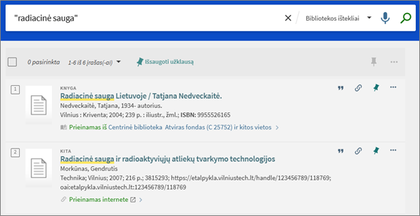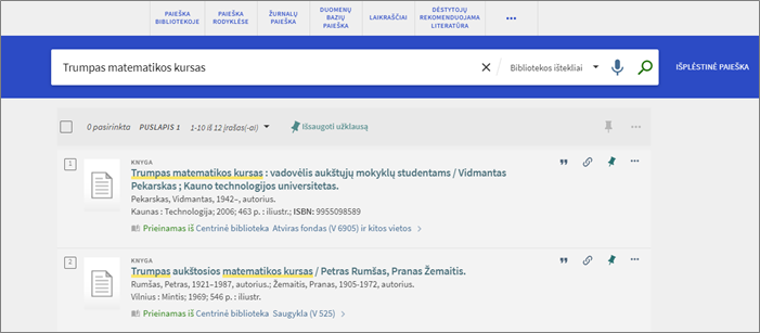 - Paieška bibliotekoje atitinka paiešką bibliotekos ištekliuose.