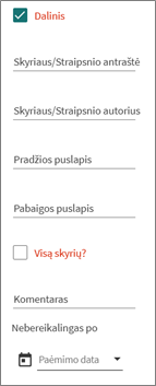 - Surašykite kuo tikslesnę informaciją apie norimą suskaitmeninti dokumentą (Skyriaus/Antraštės pavadinimą, autorių, puslapius ir pan.) ir išsiųskite skaitmeninimo užsakymą.