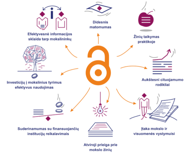 - padidinamas mokslo publikacijų matomumas, išsiplečia skaitytojų auditorija;