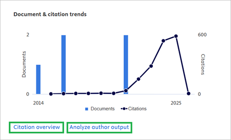 Bet kuriuo būdu sudarytus publikacijų sąrašus (paieškos rezultatus, konkretaus autoriaus ar institucijos publikacijas, atrinktus ar kitu būdu sudarytus publikacijų sąrašus) galima toliau analizuoti, naudojantis Analyze results ir Citation overview įrankiais, kurių nuorodos pateikiamos virš publikacijų sąrašo: