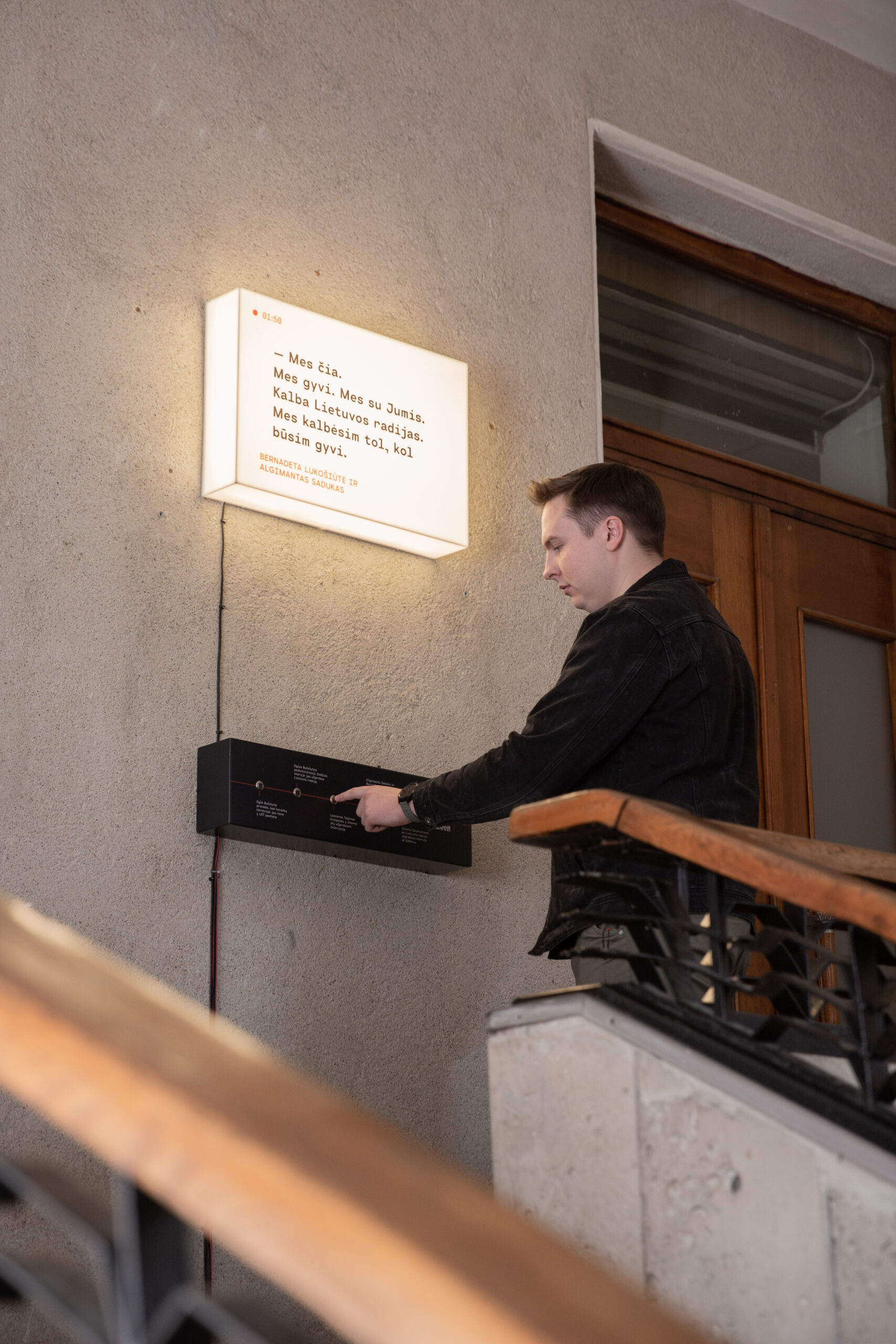 The station is simple to use: with the press of a button, visitors can select an LRT audio recording from the night of January 13, 1991. When the recording begins, the “On Air” sign above the main doors lights up. The location itself is historically significant, as bullet marks from that fateful night remain visible at the old LRT Radio entrance.