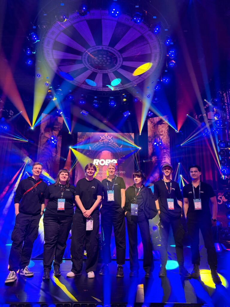 On the very first day of the exhibition, during the international “ROBE lighting” distributors’ meeting, Lithuania was also mentioned. The Faculty’s partner, “Scenos techninis servisas” (StS), was highlighted as a best practice example from Lithuania. In cooperation with the “Next Robe Generation” project, the StS team created opportunities for the students to gain first-hand insight into world-class industry standards.