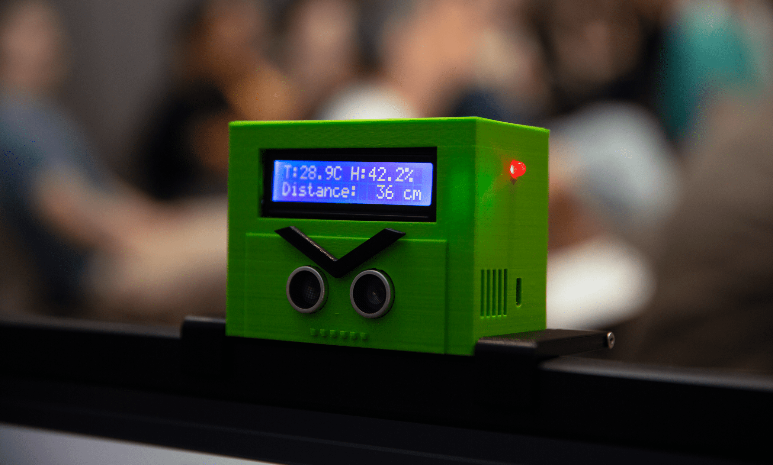 Five student teams presented prototypes: "Smart Helper", a monitor-mounted device that helps maintain healthy working conditions by monitoring whether the user is sitting too close to the screen, measuring room temperature and humidity, and helping to ensure good working conditions; "Growii", a smart pot with built-in sensors that tracks soil moisture, temperature and humidity and reminds the user when to water the plant; "Sound Totem" – a noise level meter that triggers light signals when the environment gets too loud, encouraging others to remember the health risks of noise; "Helper Kitten" – a wall-mounted mini-health checkpoint that can measure body temperature and pulse, designed as a simple and quick solution for public spaces; "Air Monitor" – an air quality monitor that measures temperature, humidity and gas concentrations, and triggers alarms such as sound and red light when safety limits are exceeded.