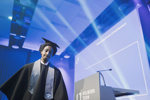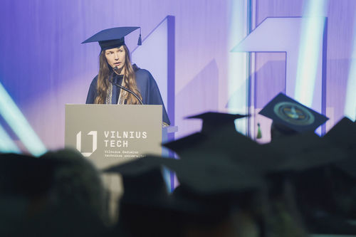 „Universitetas mums davė gilų pasaulio pažinimą, išmokė laikytis savo idealų ir kurti grožį, ten, kur kiti jį seniai pamiršdavo. Todėl nuoširdžiai dėkojame mūsų dėstytojams už žinias, kantrybę, už tai, kad kartais jie vieni tikėjo mūsų konceptais. Ačiū šeimoms ir draugams už supratingumą, palaikymą, kantrybę. Ačiū mums patiems už tai, kad nepaisant visų nesklandumų, bemiegių naktų ir begalinio tobulinimo, mes stovime čia. Tebūna mūsų ateitis apgalvota, tvari ir, jei įmanoma, be sistemos klaidų. Dabar laikas auginti mūsų idėjas, brandinti jas realybėje ir leisti joms keisti pasaulį“, – dėkojo VILNIUS TECH alumnė.