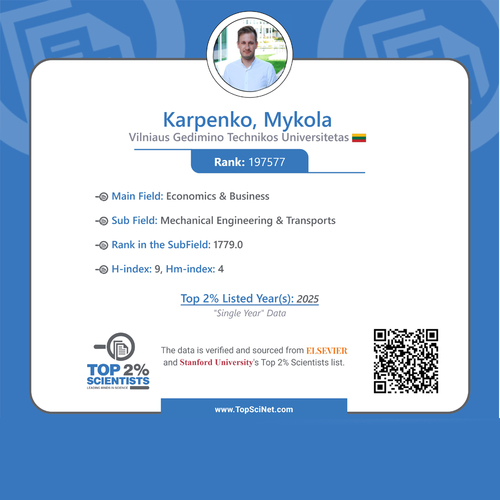 Sveikiname doc. dr. Mykolą Karpenko, kuris yra Įtrauktas į „Elsevier“ ir Stanfordo universiteto sudarytą pasaulio 2 % labiausiai cituojamų mokslininkų sąrašą („Single Year“ 2025 m. duomenys).
