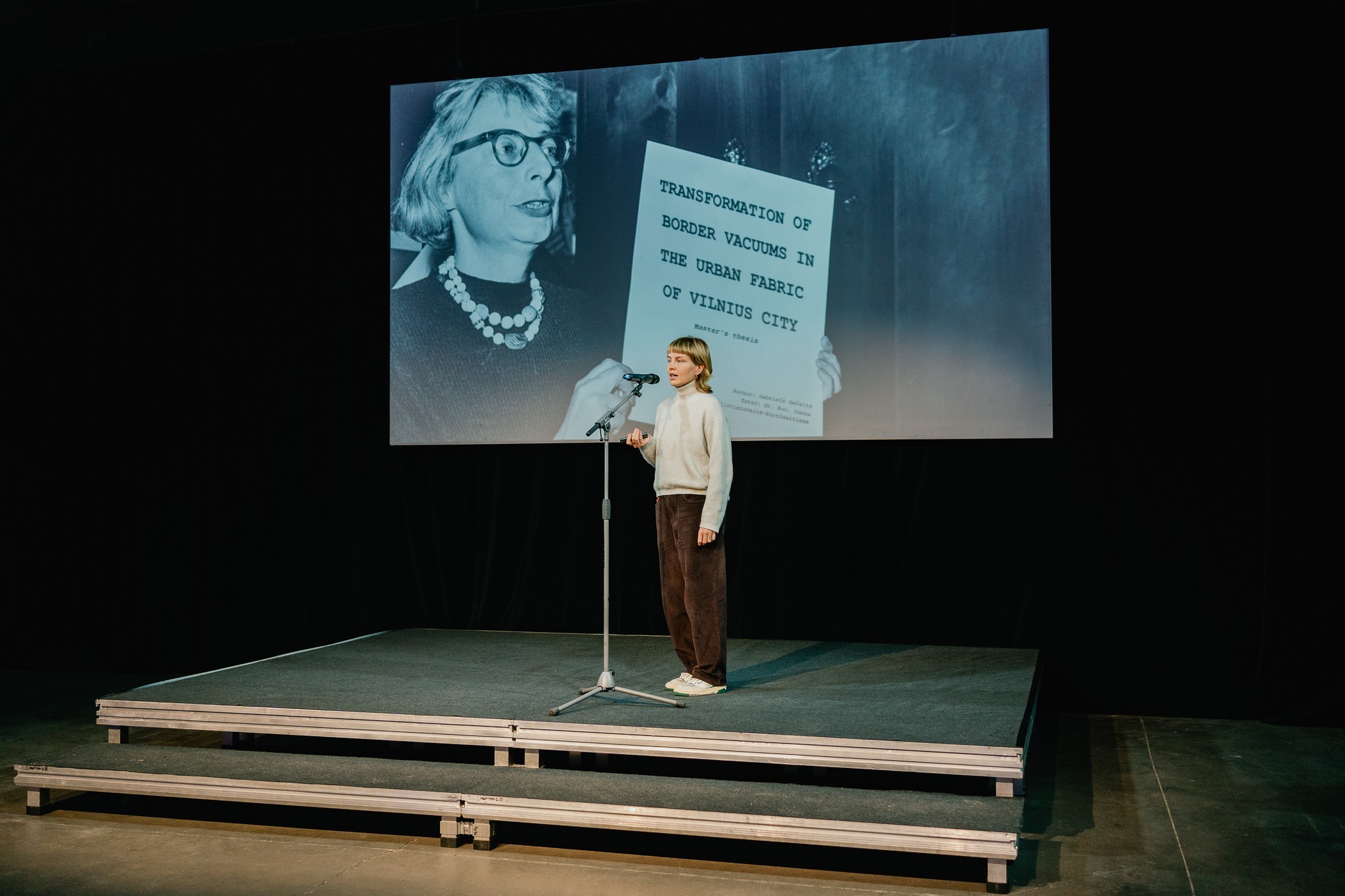 Po dirbtuvių vyko Baltijos šalių architektūros aukštųjų mokyklų geriausių diplominių darbų pristatymai ir apdovanojimai. VILNIUS TECH atstovavo absolventai Gabrielė Gečaitė ir Valdas Razma. G. Gečaitė pristatė tyrimą-projektą„Paribių vakuumų transformacija Vilniaus miesto urbanistiniame audinyje“ (vadovė doc. dr. Inesa A.-Kurtinaitienė), o V. Razma – „Tektonika architektūroje: edukacijos centras Klaipėdoje“ (vadovas prof. Audrius Ambrasas).