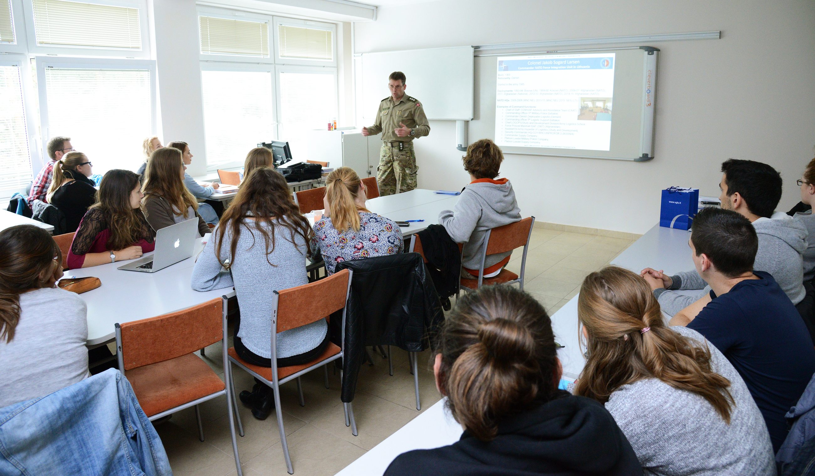 Rugsėjo 19 d. Vilniaus Gedimino technikos universitete paskaitą skaitė kviestinis pranešėjas Danijos kariuomenės pulkininkas Jakob Sogard Larsen, NATO pajėgų integravimo vieneto Lietuvoje (NFIU LTU) vadas. Kviestinio svečio paskaitą, kuri sulaukė Vokietijos, Prancūzijos, Švedijos, Lietuvos, kitų ES ir ne ES šalių studentų dėmesio, organizavo Renata Korsakienė, Verslo vadybos fakulteto docentė. Sveikinimo žodį tarė Manuela Tvaronavičienė, Verslo vadybos fakulteto profesorė ir NATO vykdomo projekto „Energetinis saugumas: kultūros pokyčiai“ (2015-2016) ekspertė.