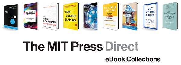 The MIT Press Direct elektroninės knygos Kolekciją sudaro daugiau kaip 3000 įvairios tematikos elektroninių knygų: menai, architektūra ir dizainas, biomedicinos mokslai, verslas, ekonomika ir finansai, informatika, inžinerija, humanitariniai mokslai, informaciniai mokslai, filosofija, psichologija ir t.t. |