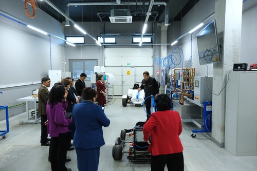 Transporto inžinerijos ir logistikos laboratorijos darbuotojai svečiams suorganizavo ekskursija po laboratorijos erdves, pristatė vykdomus tyrimus, leido praktiškai prisiliesti prie transporto ir logistikos.