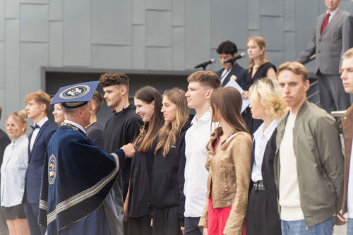 Po ceremonijos universiteto naujokai buvo kviečiami į pirmąją paskaitą – organizacijų ugdymo ir psichologijos ekspertė Rima Vanagė motyvavo jaunuolius drąsiai žengti į naująjį gyvenimo etapą ir studijas pradėti ryžtingai.