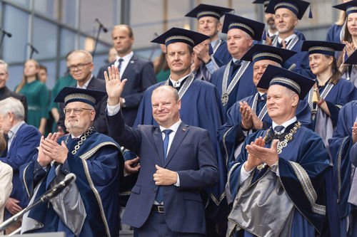Universiteto vadovas taip pat pasveikino visus tęsiančius studijas, besirenkančius mokslinę veiklą, vykdančius taikomuosius tyrimus bei doktorantus, kuriančius tarptautinio lygio inovacijas.