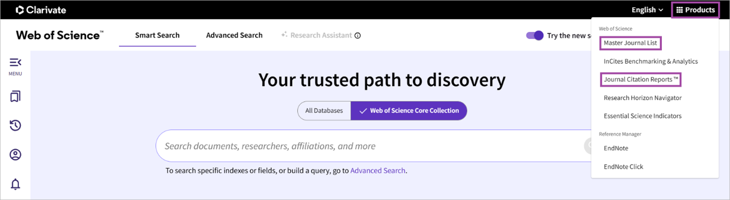 - Master Journal List (WoS, Clarivate)