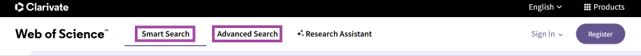 Users can choose between Advanced Search and Smart Search in the updated WoS interface.