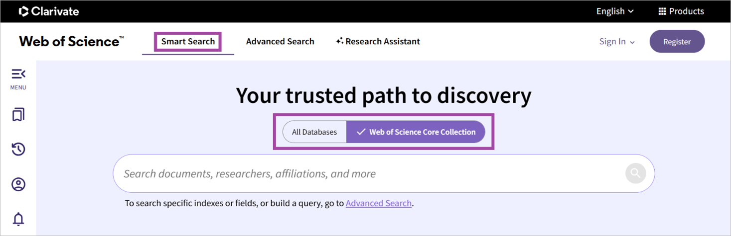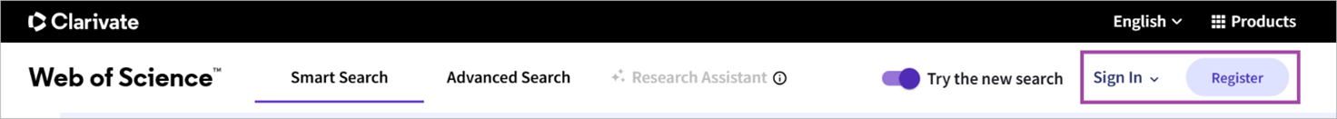 In July 2025, Smart Search became the default search mode in WoS DB. The search mode can be changed by pressing the Try the new search toggle button on the WoS DB homepage.