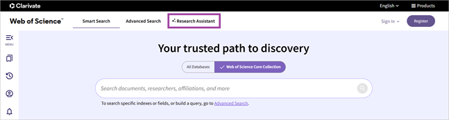 - Web of Science Research Assistant is an artificial intelligence-powered tool that helps perform tasks involving information search and analysis more efficiently.