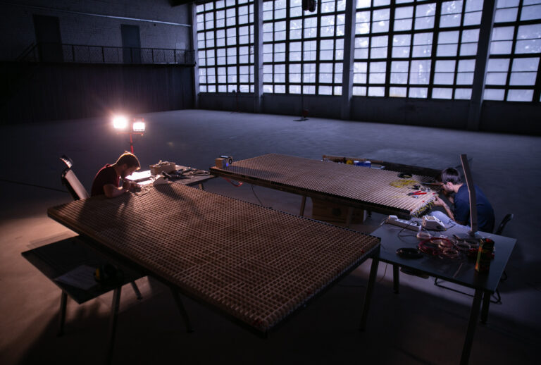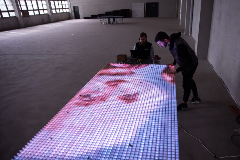 Šis LED ekranas yra kompleksinis projektas, reikalaujantis įvairių techninių ir inžinerinių sprendimų. Ekranas gamintas pasitelkiant naujausias greitojo prototipavimo technologijas. Buvo naudojami 3D spausdintuvai, lazerinės pjaustyklės ir CNC frezavimo staklės, tad ekrano gamybos procesas užtruko tik tris mėnesius. Ekrano gamybai buvo naudojamas metalas, fanera, organinis stiklas ir LED juostos. Siekiant, kad šis produktas būtų ne tik inovatyvus, bet ir praktiškas, ekranas lengvai išskaidomas į segmentus, kurie gali būti sumontuojami atgal. Išraiškingųjų pikselių paslaptis – LED lemputės, izoliuotos į 33,3 mm dydžio kvadratines celes, kurios ir sukuria stambių pikselių vaizdą.