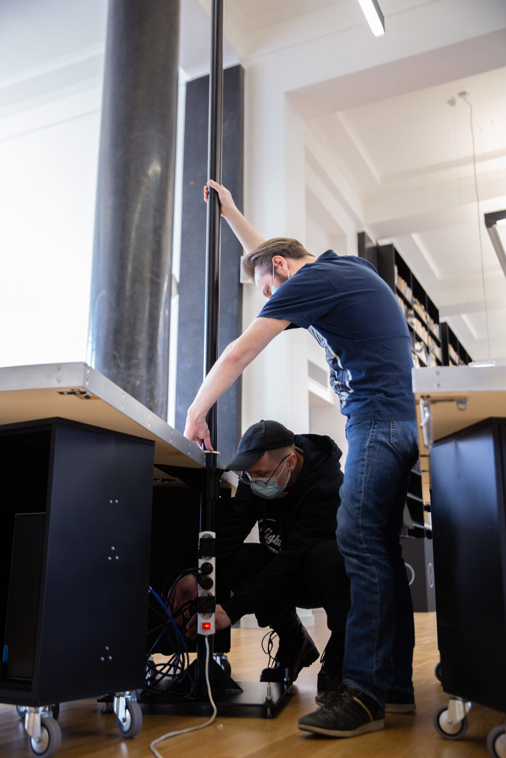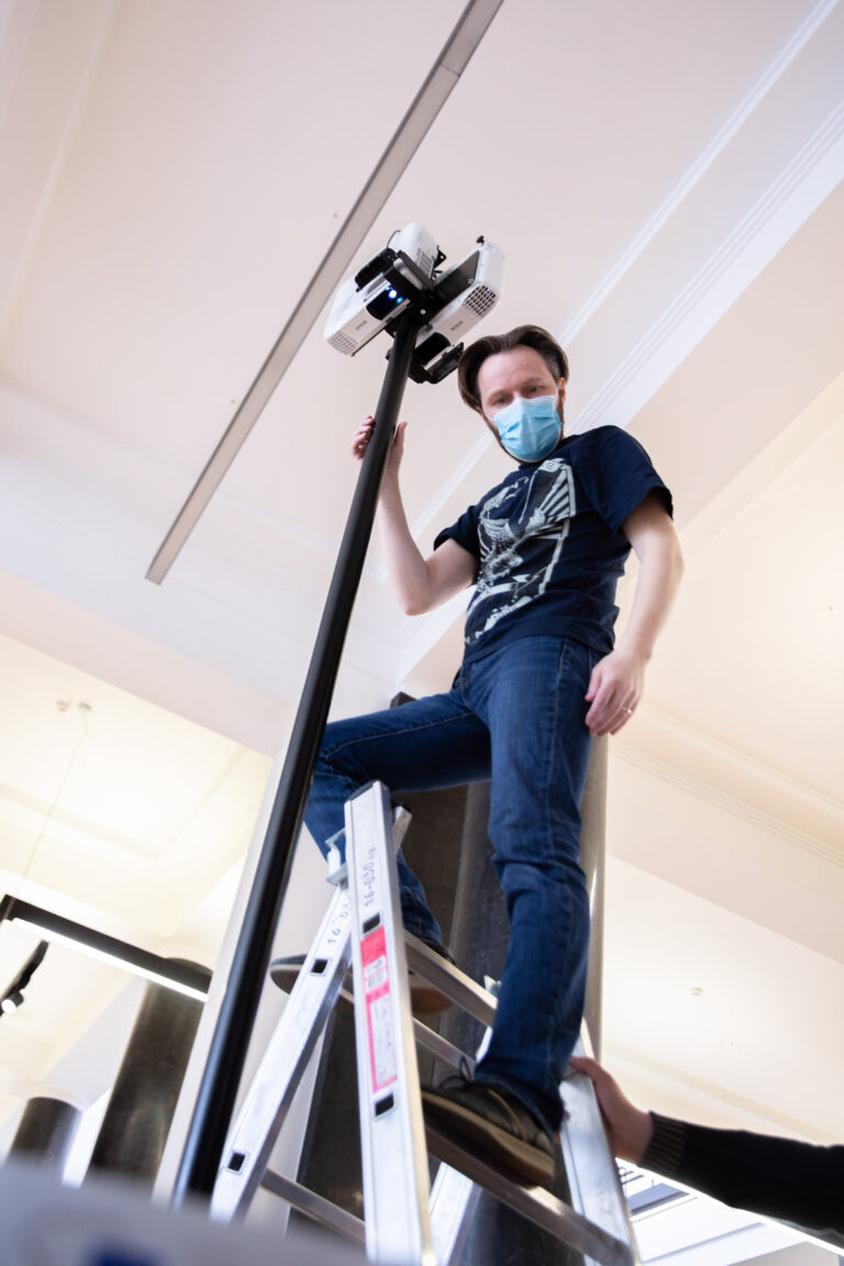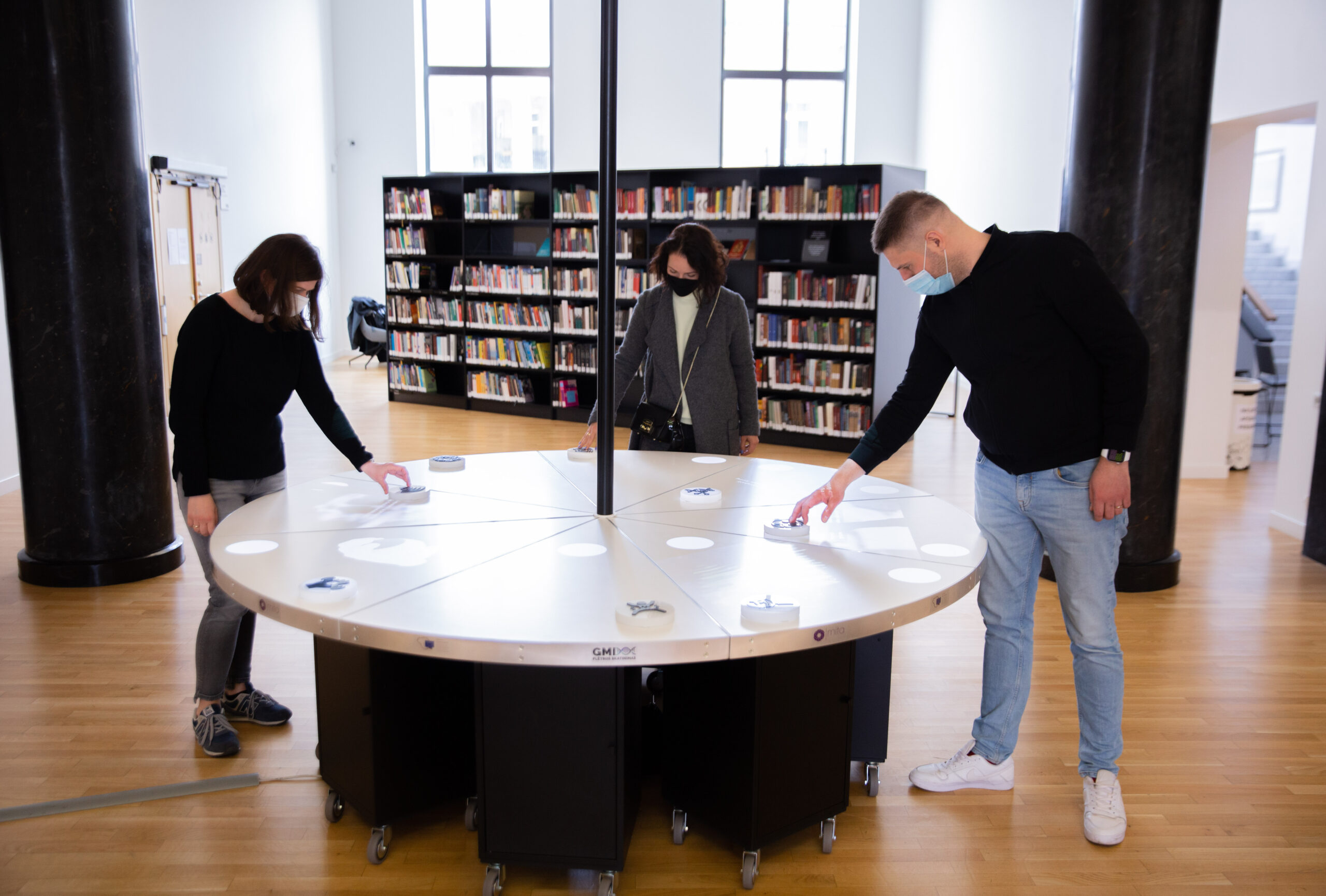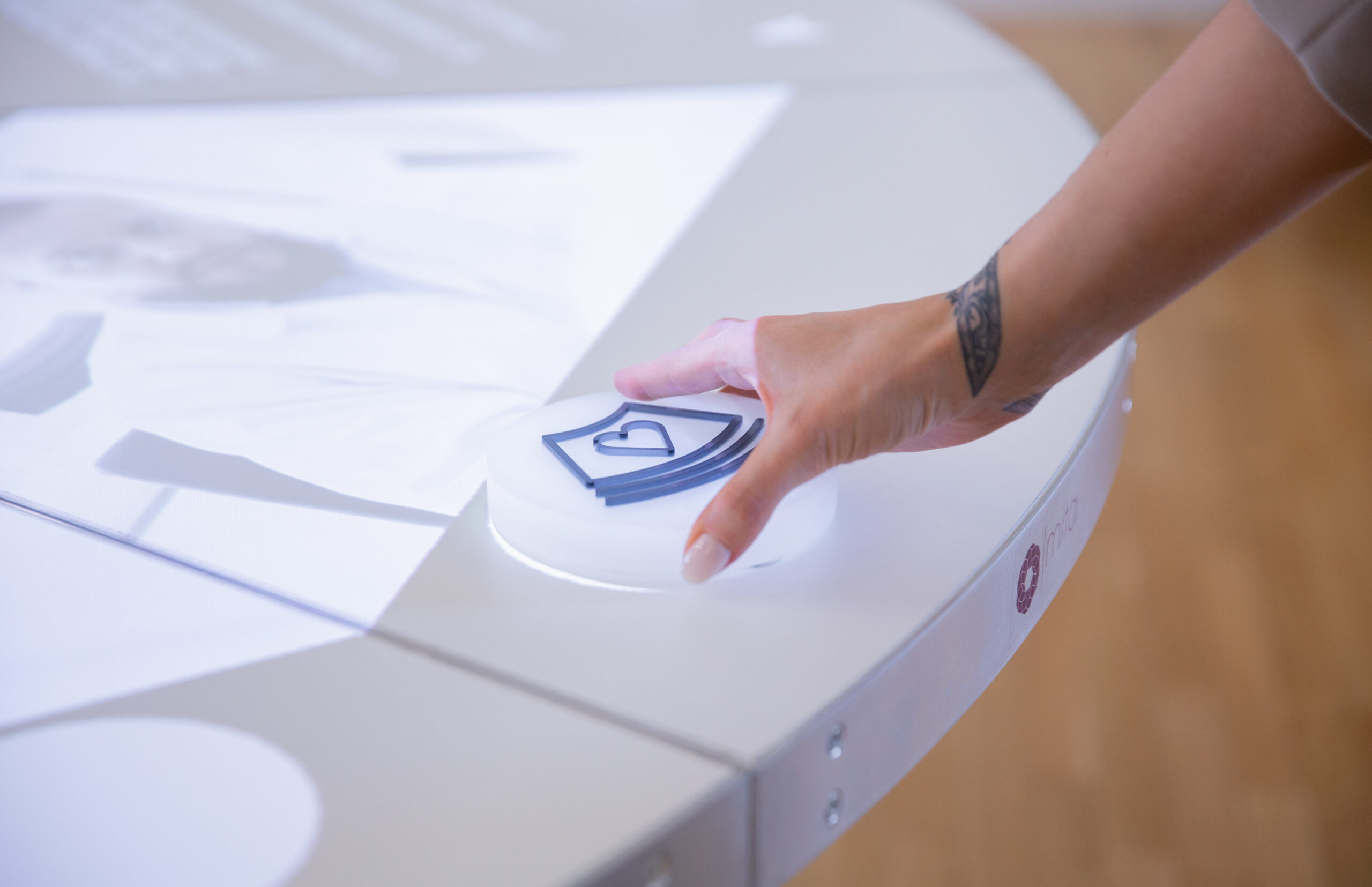 „Stende pateikta informacija leidžia interaktyviai susipažinti su Lietuvos gyvybės mokslų inovacijomis. Jame galima pamatyti kiekvienos inovacijos trimatį modelį, peržiūrėti apie inovaciją pasakojantį vaizdo įrašą ir perskaityti trumpą aprašymą. Šis skaitmeninis grafinis turinys pateikiamas projektuojant vaizdą apskrito stendo paviršiuje pasitelkiant papildytos realybės sprendimą ir naudojant projektorius. Stende įrengtos kameros fiksuoja stendo detalių pozicijas pasitelkiant vaizdų atpažinimo algoritmą,“ – pasakoja prie stendo kūrimo proceso prisidėjęs VILNIUS TECH „LinkMenų fabriko“ virtualios realybės specialistas ir projektų vadovas.
