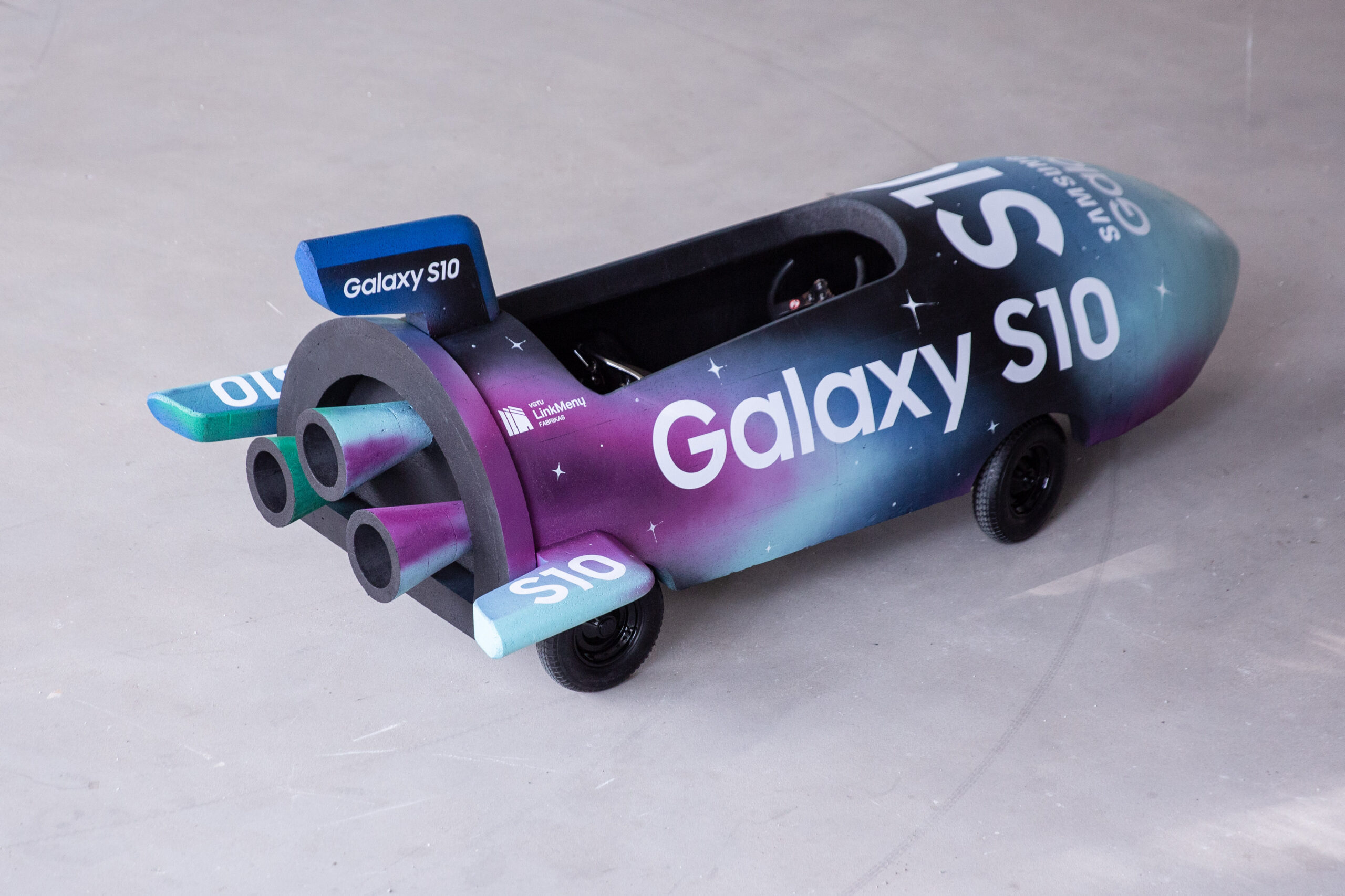 Raketos modelio kūrimui pasitelktos skaitmeninės gamybos technologijos. Vizijai išpildyti sukurtas 3D modelis, suprojektuoti konstrukciniai važiuoklės mazgai. Vilnius Tech „LinkMenų fabriko“ metalo ceche pagal projektinius brėžinius buvo sukonstruotas „muilinės“ pagrindas. Raketos kėbulo gamybai naudotas putplastis, kuris pagal 3D modelio brėžinius išpjautas, nušlifuotas ir uždėtas ant jau pagaminto „muilinės“ kartingo. Raketos kėbulas, pasitelkus specialią dažų purškimo technologiją, įgavo ryškų estetinį vaizdą.