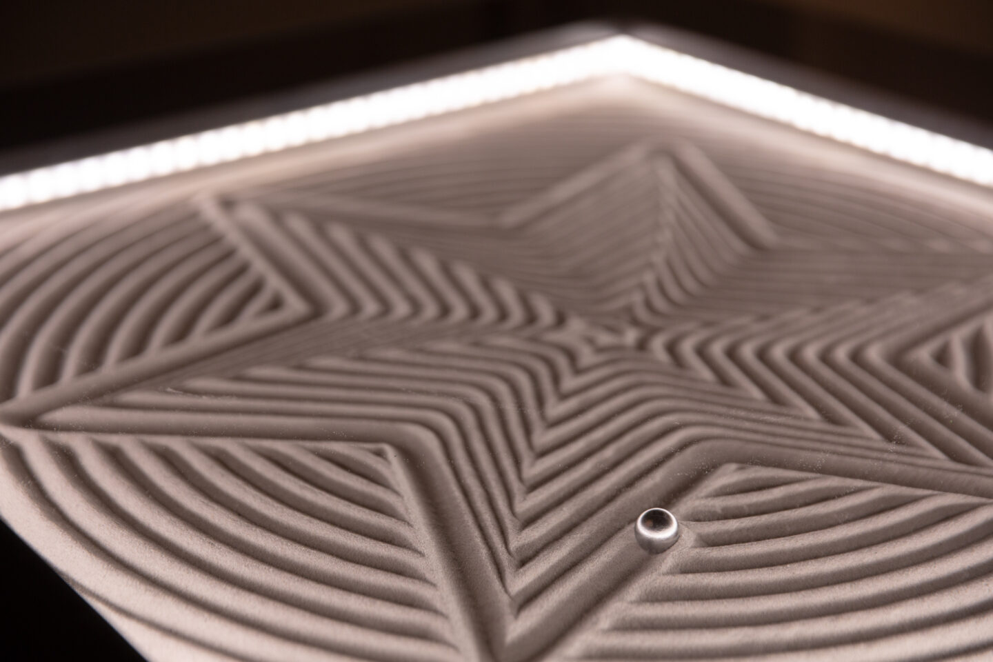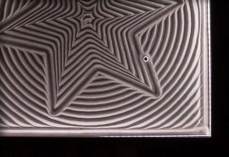 Smėlio braižytuvo idėjos autorius – VILNIUS TECH Elektronikos fakulteto studentas Julius Šapalas, kuris prisidėjo prie VILNIUS TECH „LinkMenų fabriko“ specialistų komandos, kuriant šią išmaniąją instaliaciją.