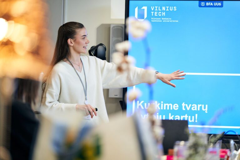 „VILNIUS TECH Aplinkos inžinerijos fakultete veikia keturios katedros, trys institutai ir laboratorijos. Aplinkos technologijų, Geodezijos ir geoinformatikos, Kelių, geležinkelių ir miestų inžinerijos, Pastatų energetikos sistemų inžinerijos ar Tvarumo technologijų studijų programų nebegalima įsivaizduoti be technologijų. Jos leidžia analizuoti didelius duomenų kiekius, modeliuoti procesus ir priimti duomenimis pagrįstus sprendimus – nuo pastatų energetikos, poveikio aplinkai, akustikos iki eismo valdymo ar potvynių prognozavimo“, – sako pašnekovė.