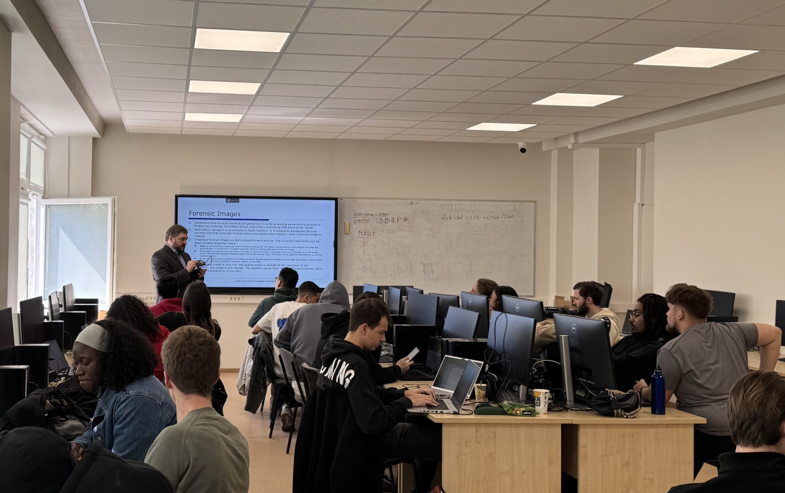 Balandžio 22–24 dienomis (trečiadienį–penktadienį) studentai dalyvavo skaitmeninės kriminalistikos praktinėse dirbtuvėse. Jų metu jie dirbo su skaitmeninių tyrimų metodais, analizavo duomenis ir susipažino su kibernetinių incidentų tyrimo procesu. Intensyvaus kurso metu studentai naudojo teisėsaugos institucijų taikomus techninius sprendimus ir programinę įrangą, o praktinės užduotys leido geriau suprasti, kiek daug informacijos kasdien kaupiama mūsų naudojamuose įrenginiuose.