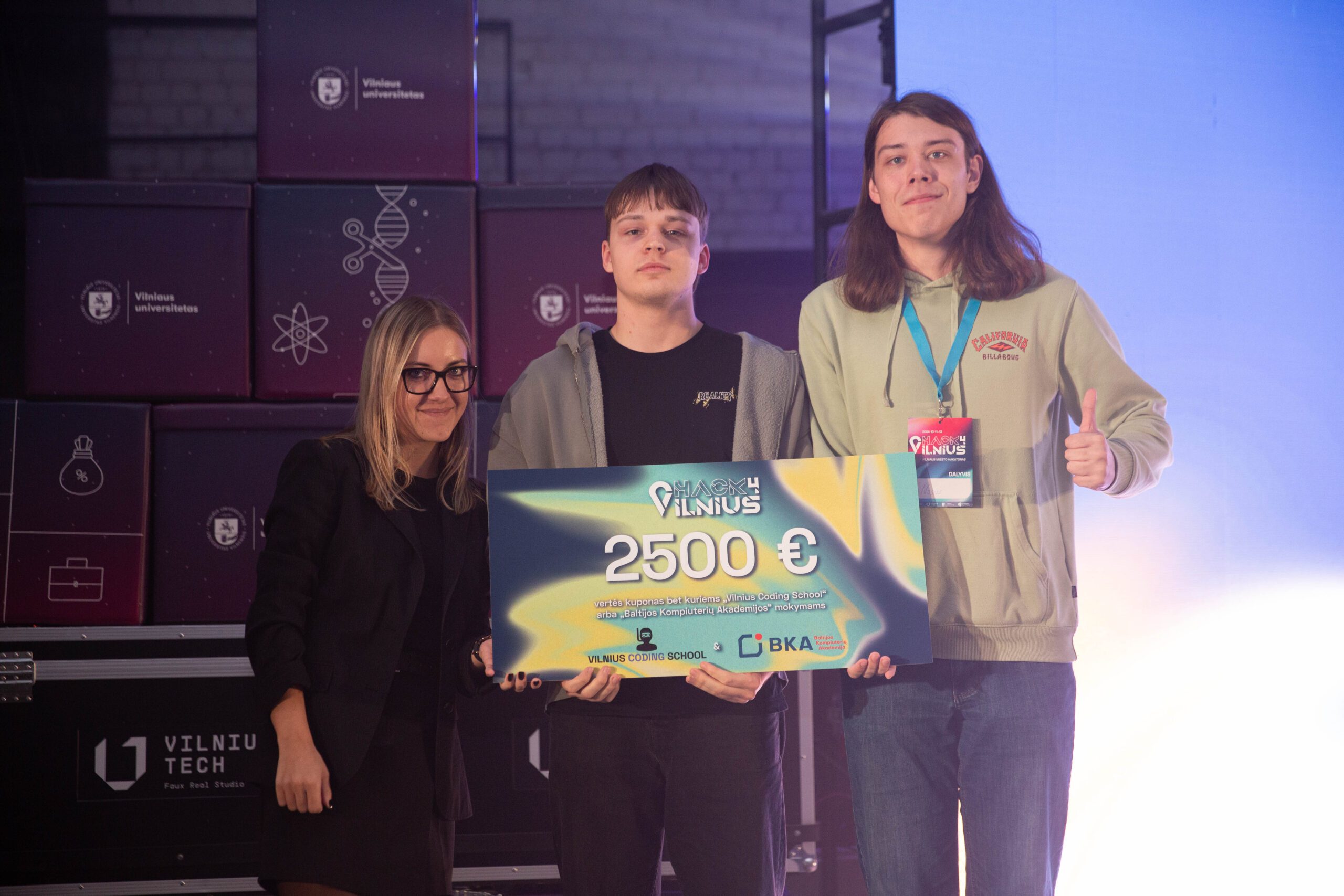 „Vilnius Coding School“ įsteigtą 2500 eurų vertės kuponą bet kuriems Vilnius Coding School arba Baltijos Kompiuterių Akademijos mokymams laimėjo komanda „Draugystė“. Komanda sukūrė programėlę, kurioje dirbtinio intelekto pagalba, pagal mokinio gebėjimus, atrenkamos Valstybinių brandos egzaminų užduotys ir kuriamos naujos, taip užpildant moksleivių žinių spragas.