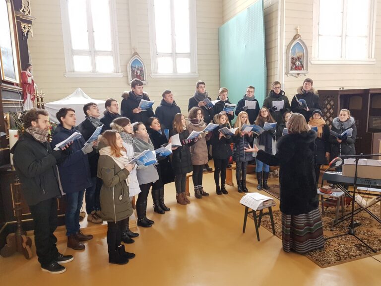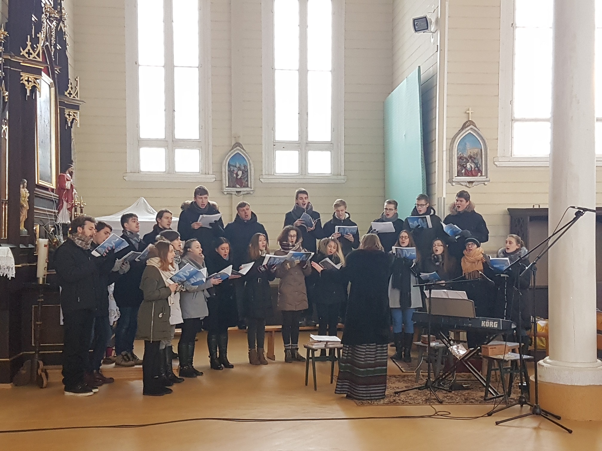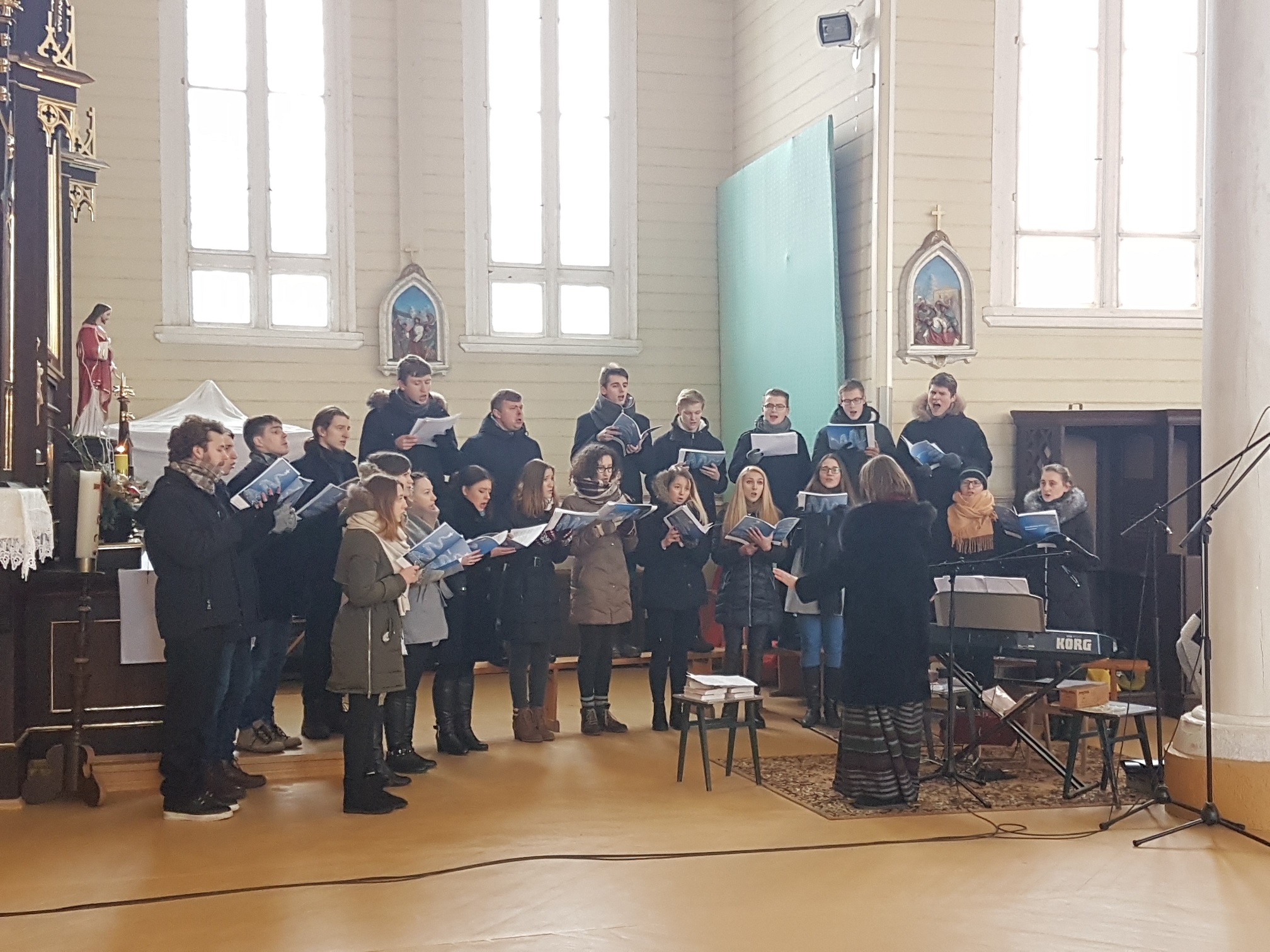 Sekmadienio rytą gabijiečiai skubėjo giedoti Kapčiamiesčio Dievo Apvaizdos bažnyčios rytinėse Mišiose. Jiems kompaniją palaikė Lazdijų kultūros centro kamerinis choras „Gaustas“. VGTU choras „Gabija“ į Šv. Mišias įsiliejo giedodamas „Kyrie“ ir „Sanctus“, Urmo Sisask „Omnis Una“, nežinomo autoriaus giesme „Amazing Grace“, o po Šv. Mišių klausytojus pradžiugino dar keliais kūriniais. Dirigavo meno vadovė R.Viskantaitė, akompanavo koncertmeisteris ir chormeisteris K. Kerbedis.