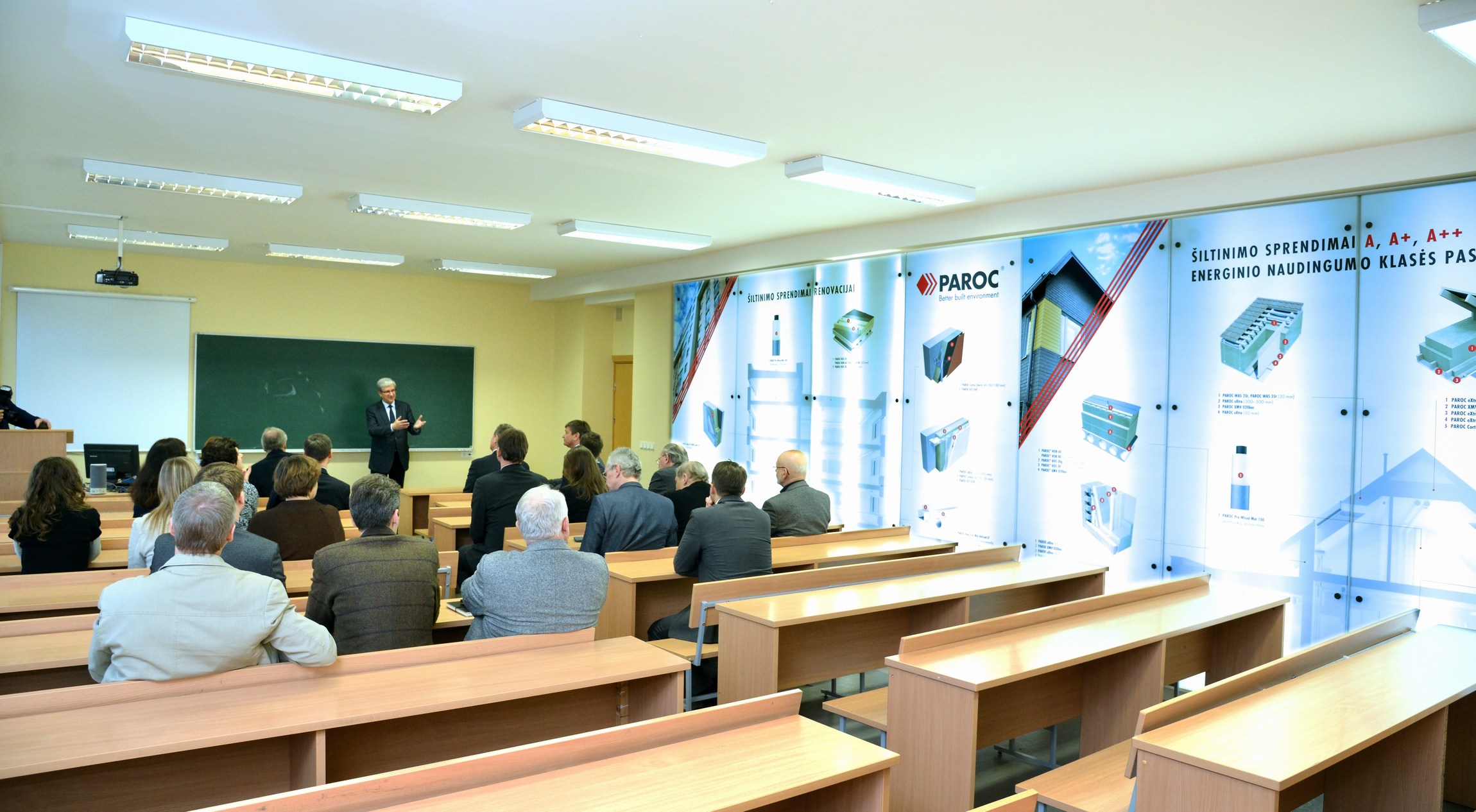 Nuo šiol VGTU atsirado dar viena „Paroc“ žymė, tai – „Paroc“ globojama auditorija, kur įrengtoje informacinėje sienoje pristatomi renovacijos sprendiniai, nuo 2016 metų Lietuvoje pradėsiančios galioti A energinio naudingumo klasės sprendiniai naujiems pastatams.