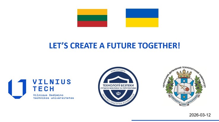 Vilniaus Gedimino technikos universiteto (VILNIUS TECH) Statybos fakulteto (SF) Statybinių medžiagų ir gaisrinės saugos (SMGS) katedros dėstytojai doc. dr. Ritoldas Šukys ir dr. Aušra Stankiuvienė kovo 12 d. nuotoliu dalyvavo Ukrainoje vykusioje mokslinėje–praktinėje konferencijoje apie saugumo technologijas.