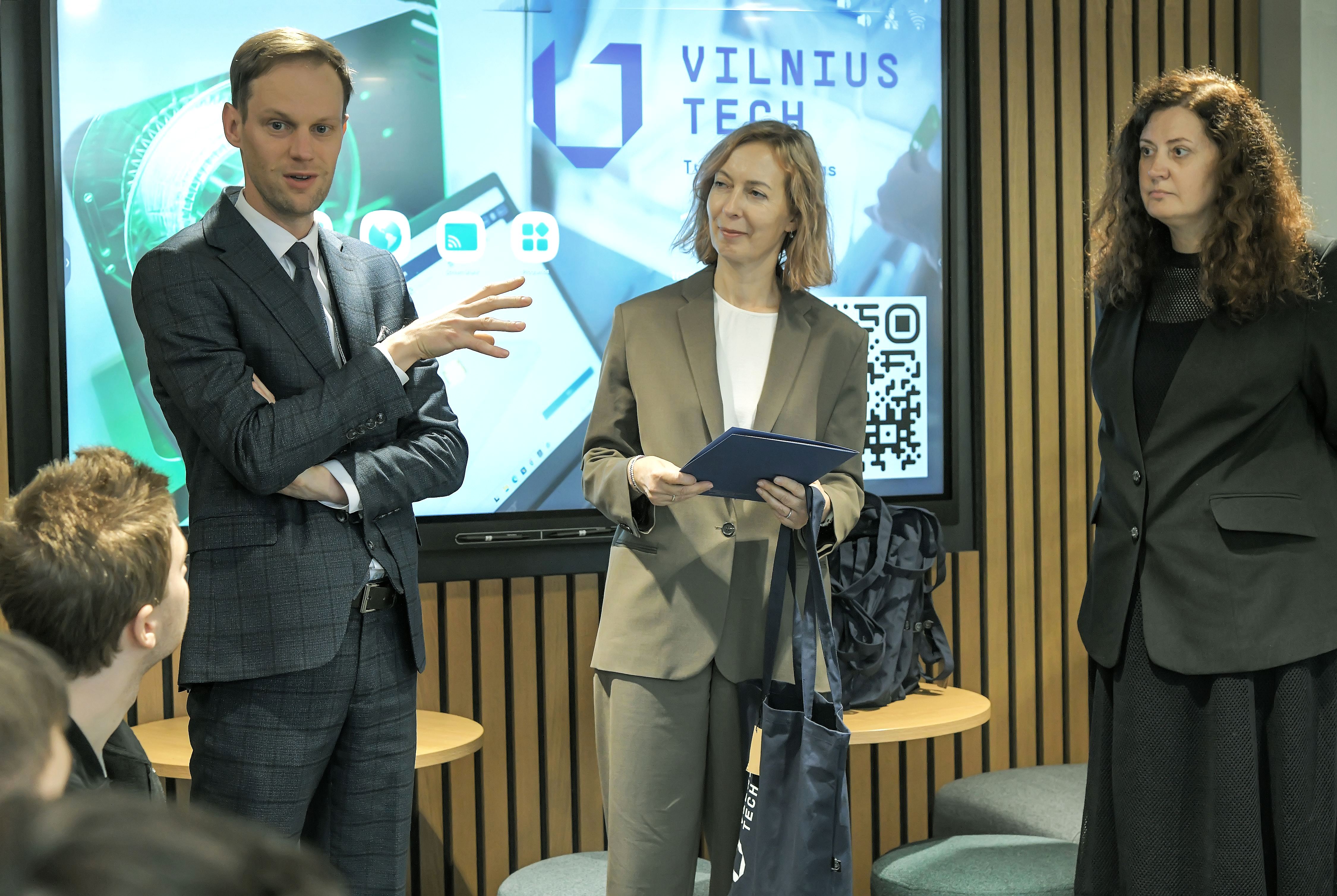 Studentus apdovanojęs VILNIUS TECH Strateginės partnerystės prorektorius doc. dr. Adas Meškėnas universiteto bendruomenės vardu dėkojo jiems už pilietiškumą, pagarbą teisinėms vertybėms ir pabrėžė, kad tokios iniciatyvos padeda jauniems specialistams aiškiau suvokti savo vaidmenį ir atsakomybę būsimoje profesinėje veikloje.