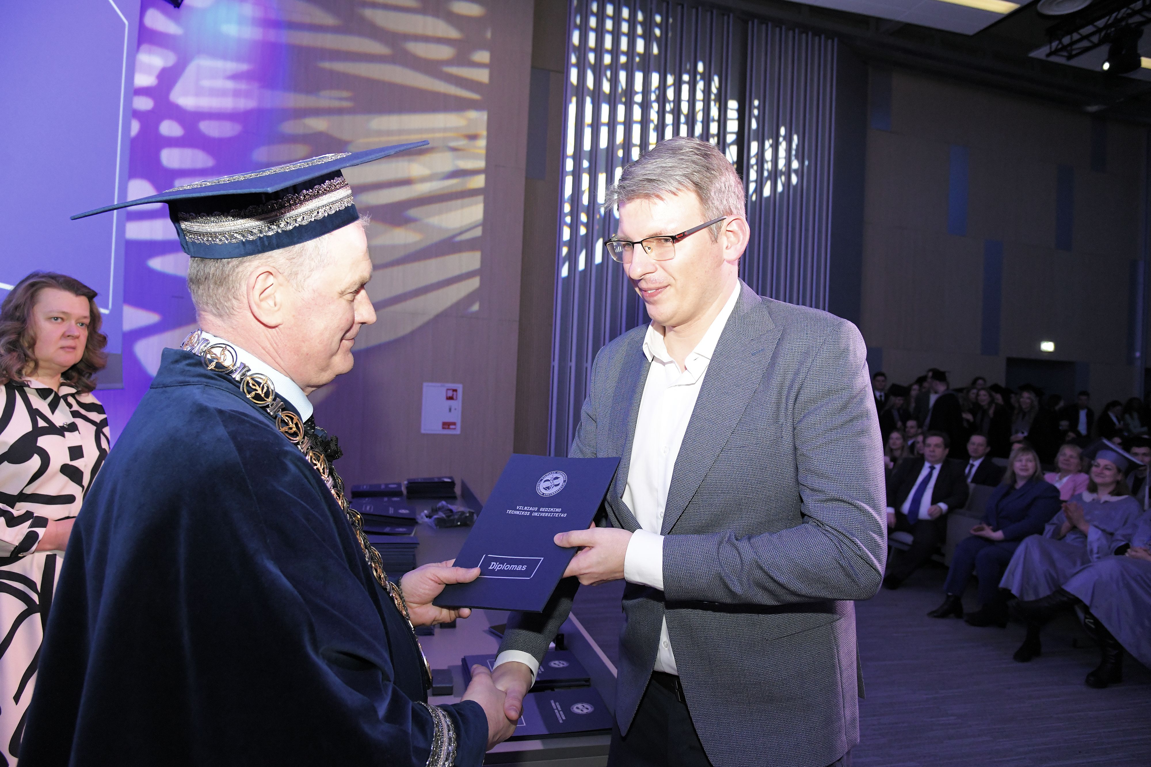 VILNIUS TECH įvyko iškilminga diplomų įteikimo ceremonija – jos metu išlydėta daugiau nei du šimtai rytojaus kūrėjų, sėkmingai baigusių bakalauro bei magistro studijas. Šventės metu įteikta net dvidešimt diplomų su pagyrimu bei penkiolika Magna Cum Laude ir Cum Laude diplomų.
