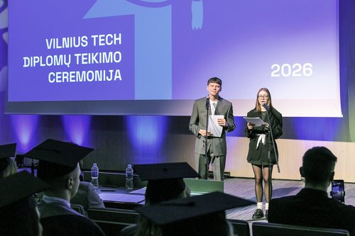 Ceremoniją pradėjęs VILNIUS TECH rektorius Romualdas Kliukas pasveikino absolventus, pabrėždamas ne tik akademinės bendruomenės pasididžiavimą jų pasiekimais, bet ir universitete įgytų įgūdžių svarbą: diplomas – tai tik dalis to, ką jaunieji specialistai išsineša baigę studijas.