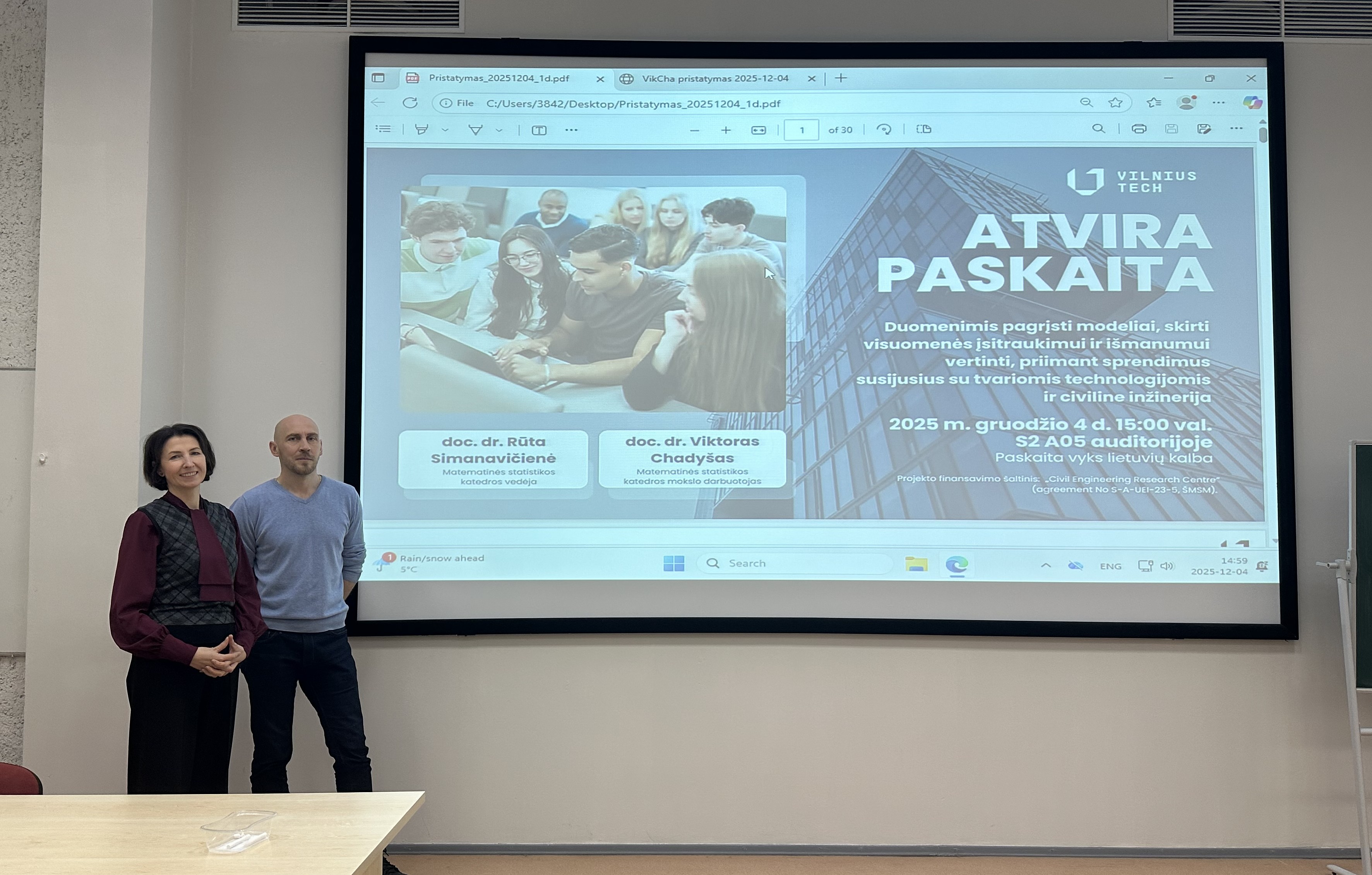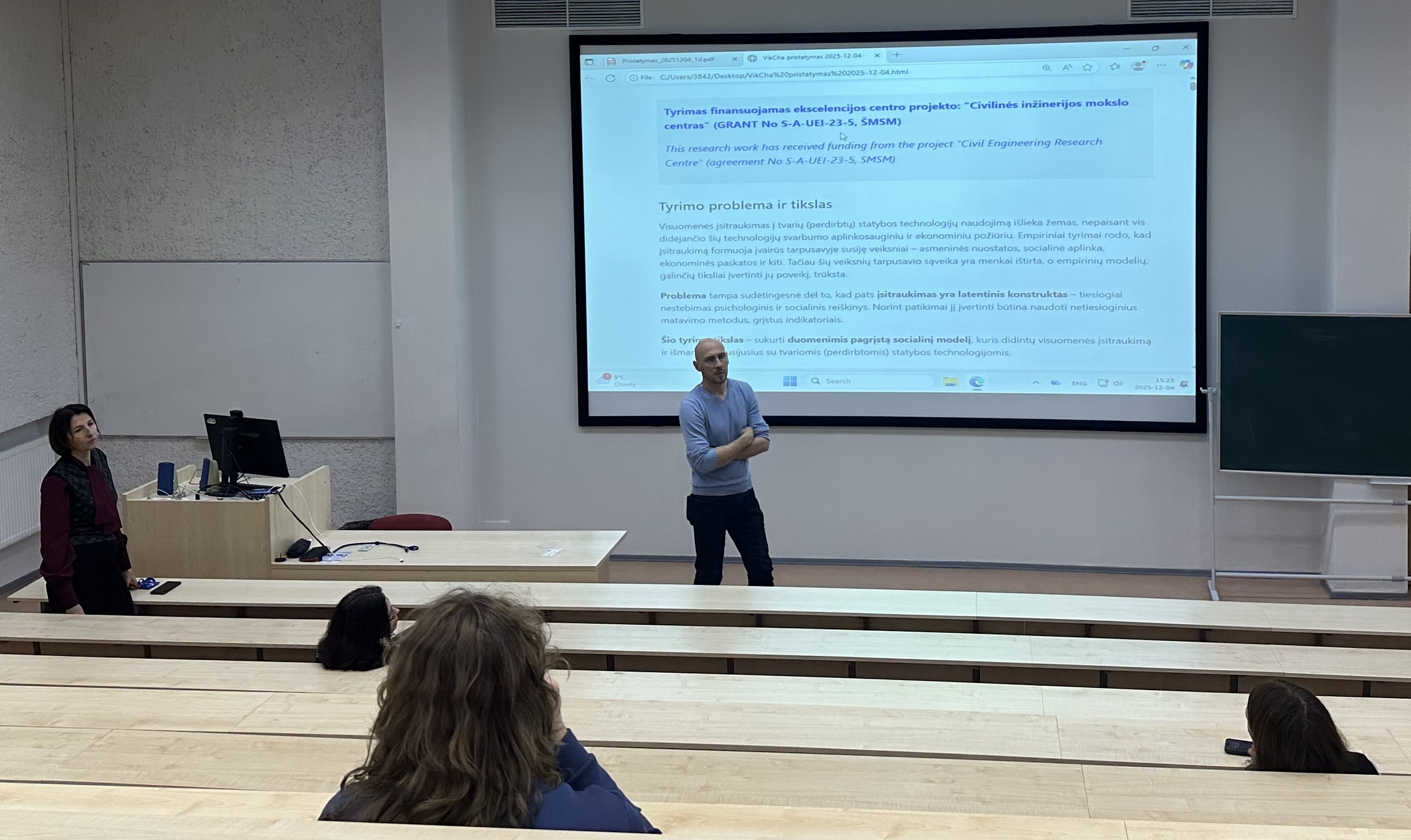 Doc. dr. R. Simanavičienė ir doc. dr. V. Chadyšas renginio metuVeiksniai, lemiantys visuomenės sprendimus tvarios inžinerijos srityje