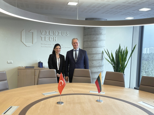VILNIUS TECH lankėsi naujoji Turkijos ambasadorė Esra Toplu ir antrasis ambasados sekretorius Mehmet Bakici. Susitikimo metu aptarti ne tik stiprėjantys akademiniai ryšiai, bet ir įspūdingi augimo rodikliai – Turkijos studentų bendruomenė universitete tampa viena didžiausių ir aktyviausių.