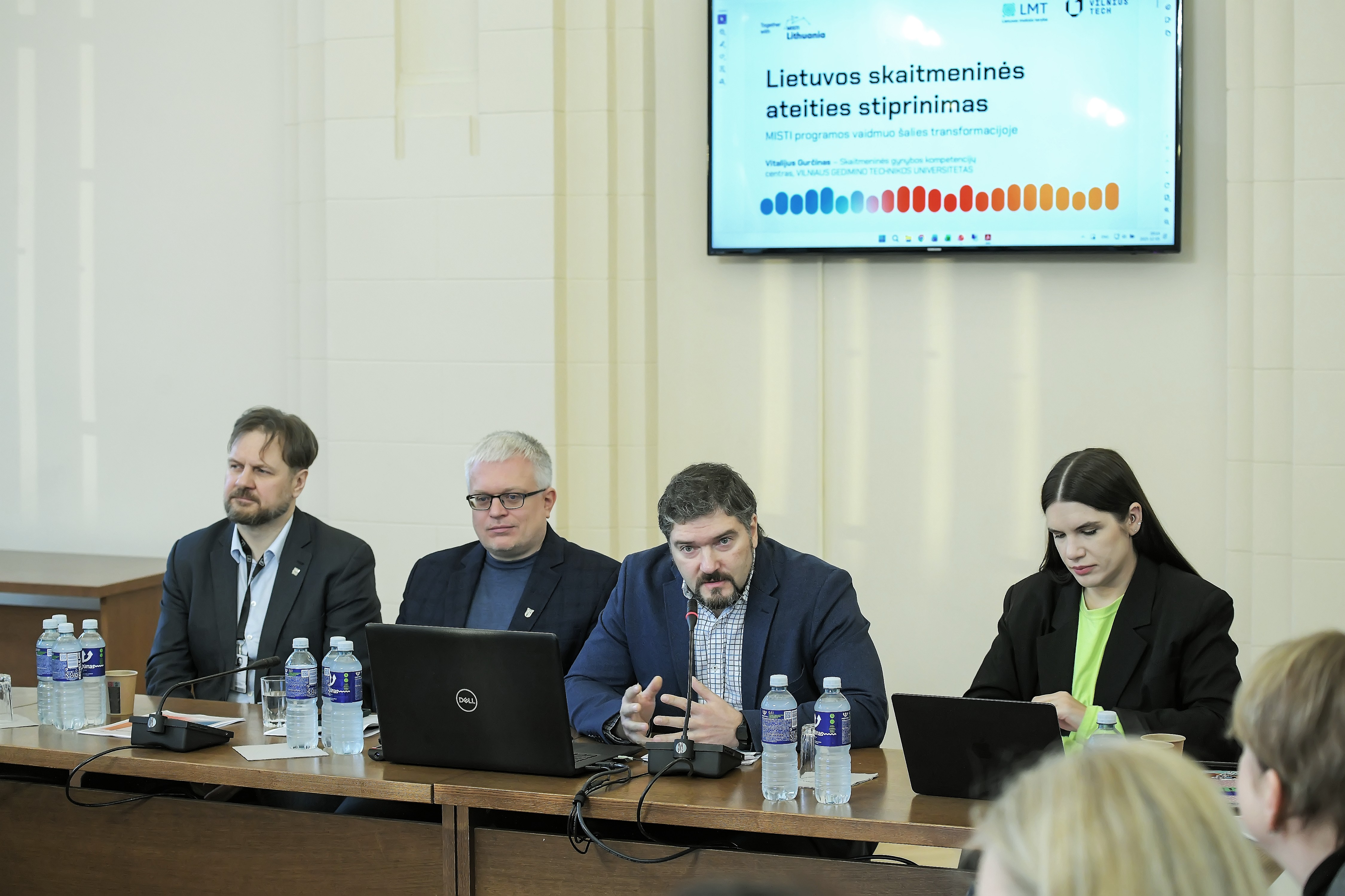 Šiandien Lietuvos mokslo taryboje (LMT) vykusiame renginyje VILNIUS TECH Skaitmeninės gynybos kompetencijų centro direktorius Vitalijus Gurčinas pristatė vieną svarbiausių šalies raidos krypčių – Lietuvos skaitmeninės ateities stiprinimą. Pranešimo centre – tarptautinės MISTI programos vaidmuo šalies transformacijoje.