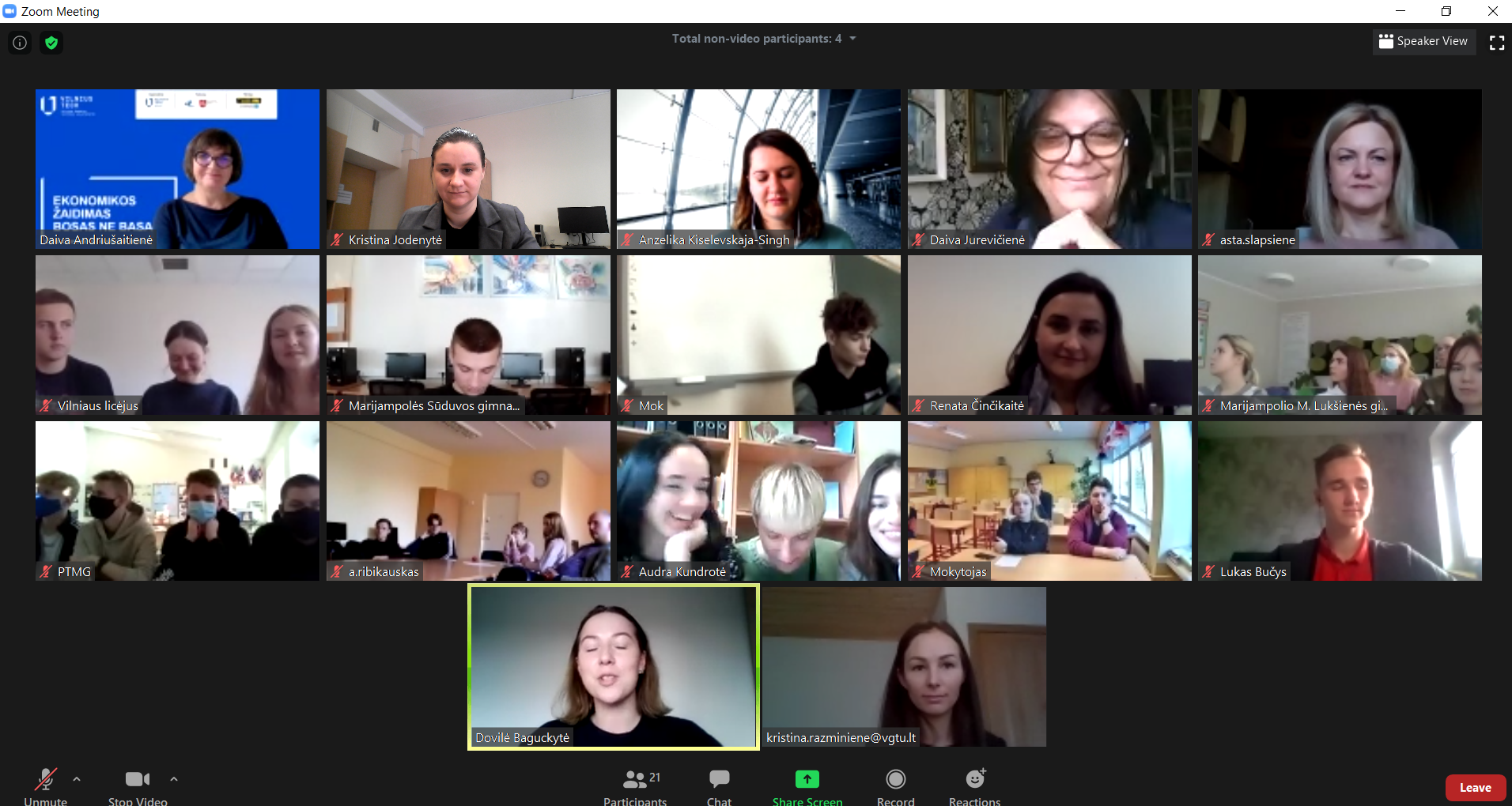 Visi – gimnazijų komandos – finalininkės, Ekonomikos inžinerijos katedros dėstytojai bei rėmėjai – finaliniame žaidime susitiko nuotoliniu būdu. Finalo dalyvius pasveikino Verslo vadybos fakulteto dekanė prof. dr. Jelena Stankevičienė bei LR ekonomikos ir inovacijų viceministrė Jekaterina Rojaka.