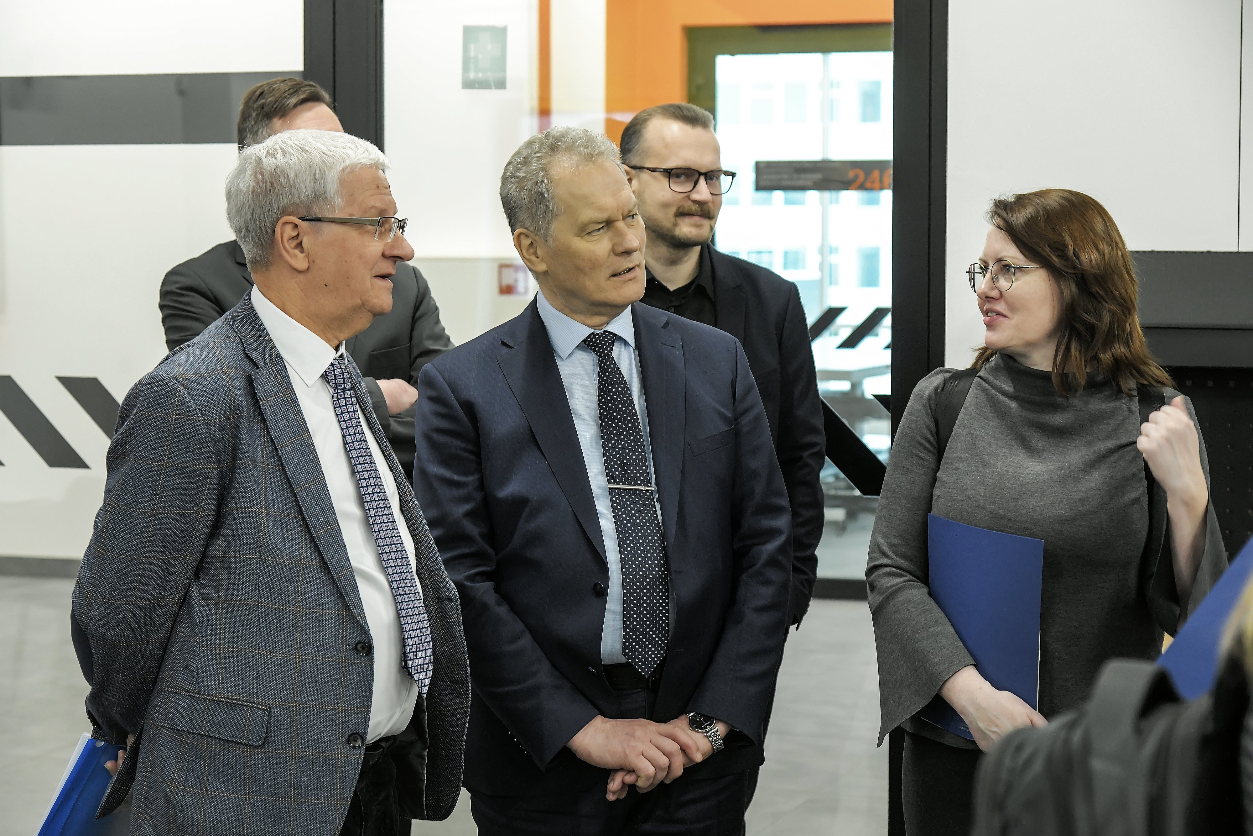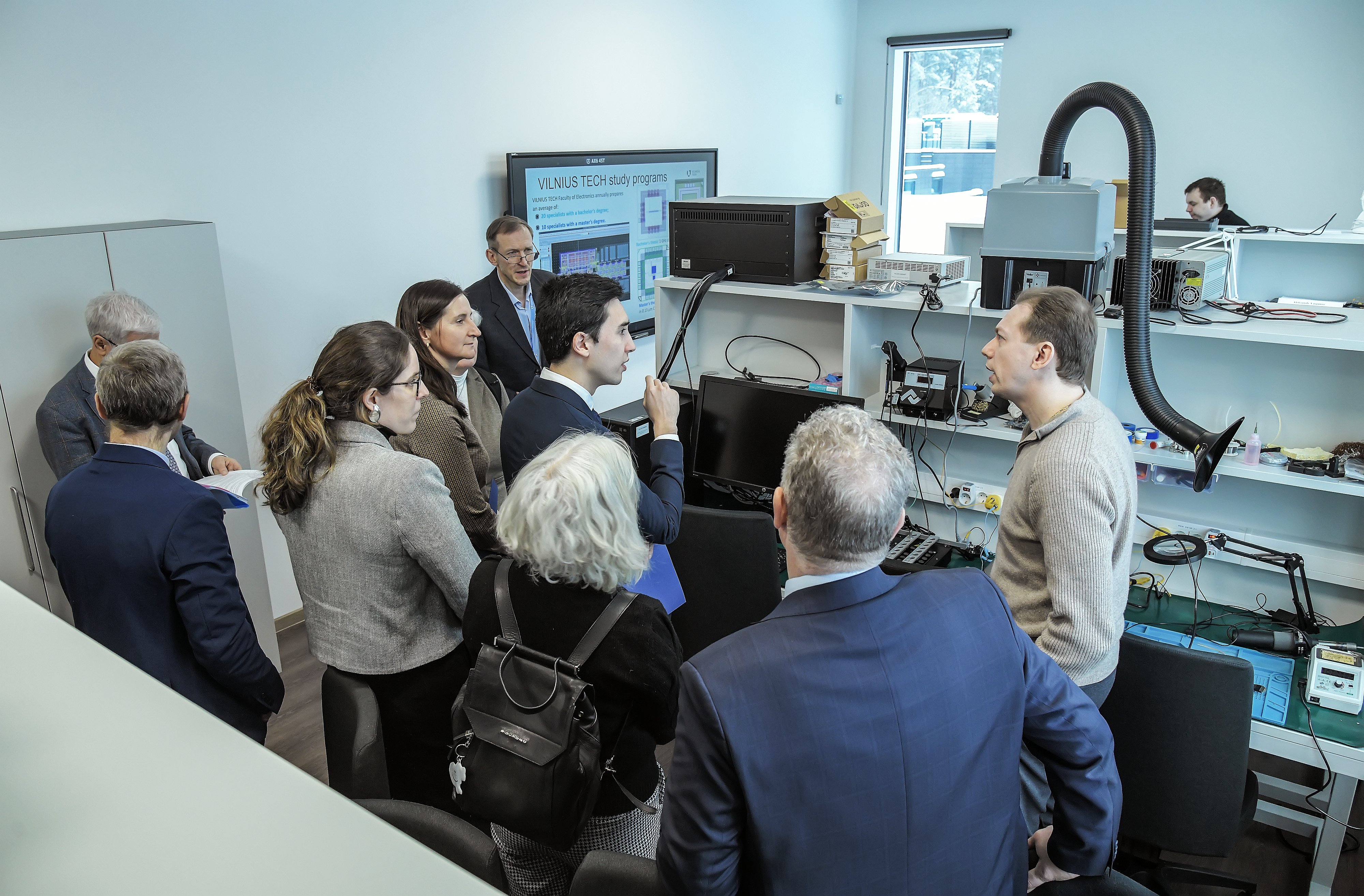 Šiandien VILNIUS TECH lankėsi Europos Komisijos (EK) ir Švietimo, mokslo ir sporto ministerijos (ŠMSM) atstovai. Šio vizito tikslas – iš arti susipažinti su sėkmingais Europos Sąjungos (ES) investicijų projektais ir jų kuriamu poveikiu Lietuvos mokslo bei inovacijų ekosistemai.