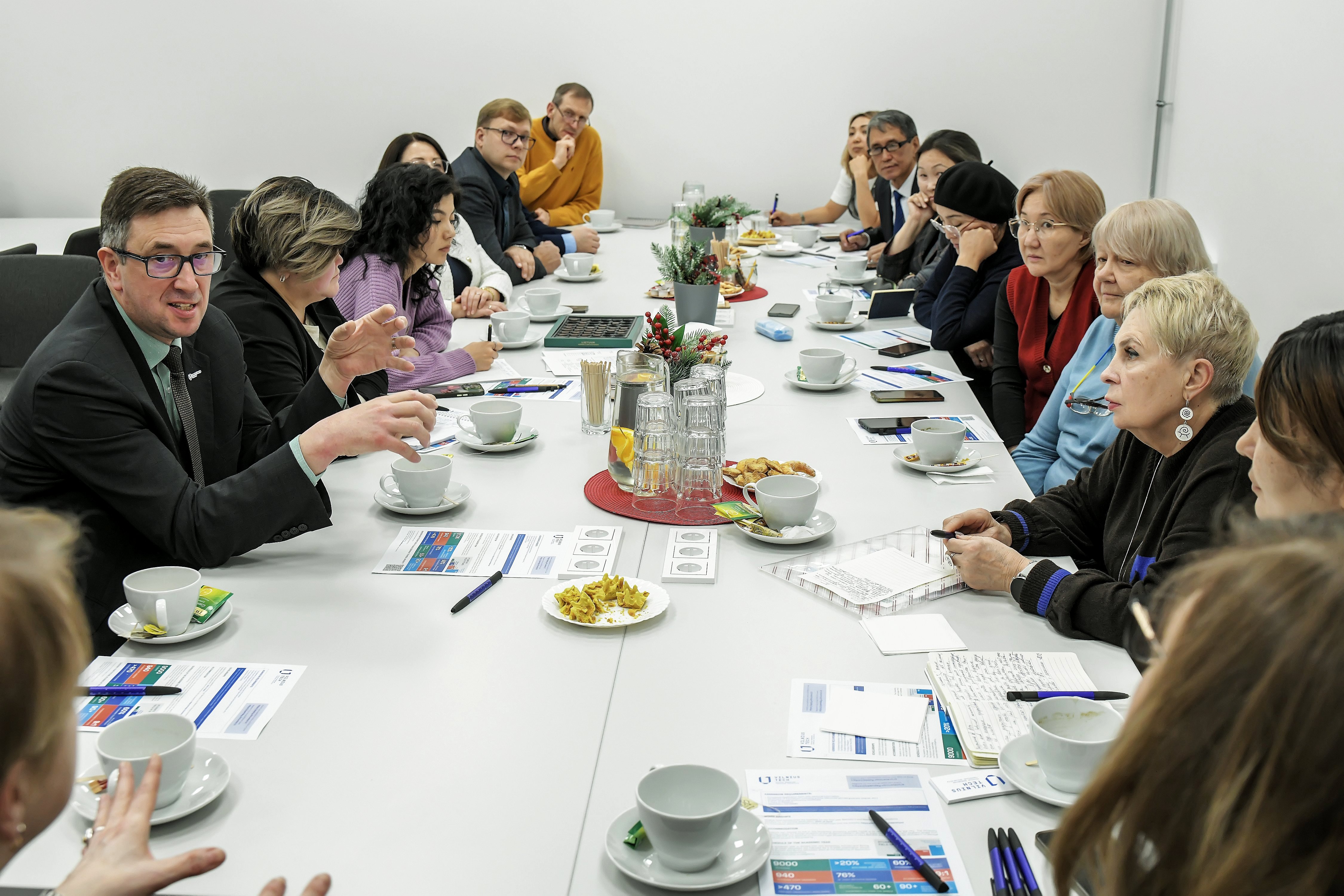 Svečiai teiravosi apie galimybes Kirgizijos pedagogams atvykti į Lietuvą ilgesniam laikui, įsitraukti į universitetinę aplinką ir praktiškai išmokti inžinerinių pagrindų, kuriuos vėliau galėtų perteikti mokiniams. Taip pat domėtasi galimybėmis gabiems Kirgizijos moksleiviams studijuoti VILNIUS TECH, stipendijomis bei nuotoliniais parengiamaisiais kursais.