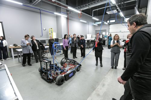 Didelį įspūdį delegacijai paliko VILNIUS TECH modelis, kai universiteto dėstytojai vyksta į mokyklas arba moksleiviai atvyksta į universiteto laboratorijas atlikti praktinius bandymus.